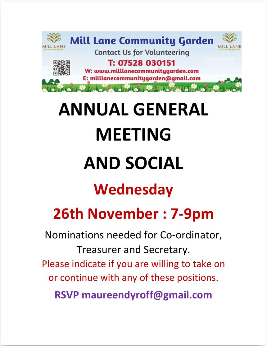 | Annual General Meeting 26th November 7 – 9pm | If you would like to attend the AGM or volunteer to be a committee member,